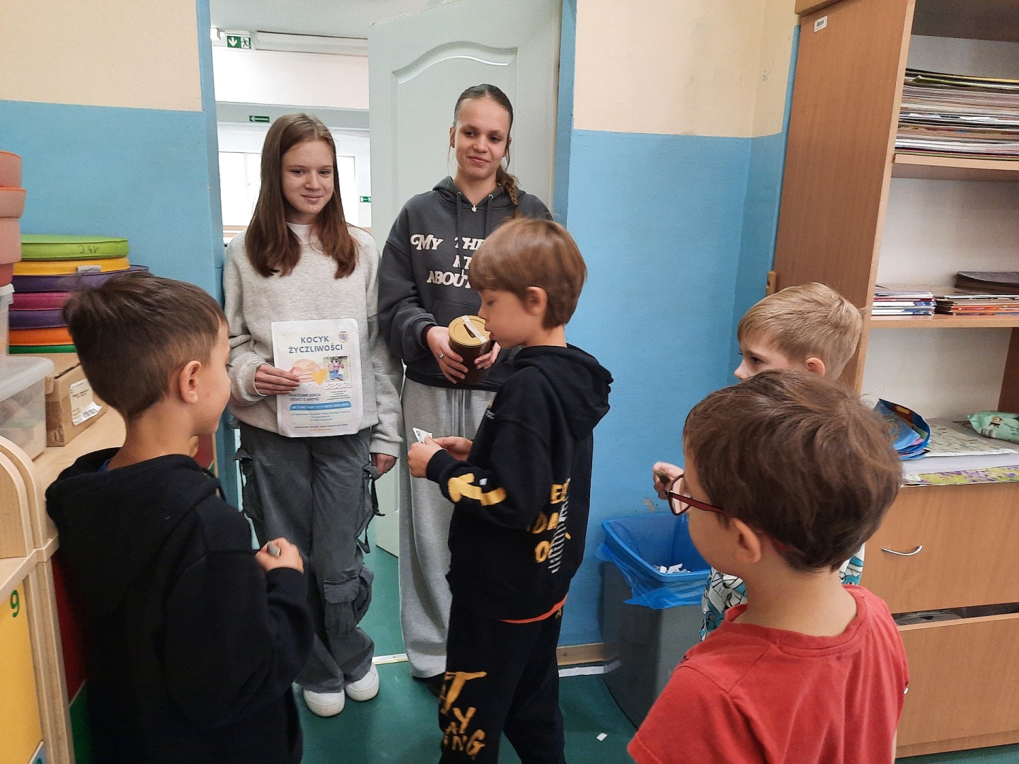 Aby koce mogły zostać przetransportowane, początkowo zapakowano je w duże bele. Obecnie nauczyciele starannie je składają i pakują na nowo, przygotowując osobny, „kocykowy prezent” dla każdego dziecka. Dzięki tej inicjatywie dzieci otrzymają nie tylko ciepły koc, ale przede wszystkim poczucie, że są ważne, zauważone i kochane.
