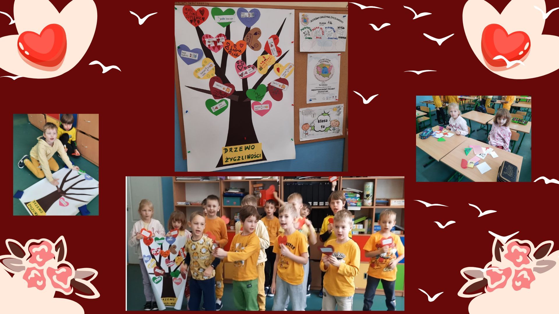 Klasa 1a w bieżącym roku szkolnym aktywnie włączyła się w różnorodne działania realizowane w ramach międzynarodowego projektu „Latający plecak życzliwości”. Uczniowie z zaangażowaniem wykonali już osiem misji życzliwości, wśród których znalazły się m.in. listy dobra, drzewo życzliwości, piosenka życzliwości, tajna misja dnia oraz łańcuszek komplementów. Każde z tych działań było okazją do rozwijania empatii, wrażliwości i umiejętności dostrzegania potrzeb innych. Wzruszającym momentem było otrzymanie przez uczniów kartek z życzliwymi słowami od dzieci z innych szkół biorących udział w projekcie. W realizację projektu aktywnie włączyli się również rodzice uczniów. Przygotowali dla swoich dzieci miłe słowa zapisane na karteczkach, które trafiły do śniadaniówek, sprawiając najmłodszym wiele radości.