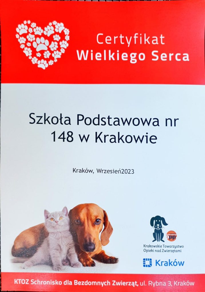 W piątek 29.09 do Krakowskiego Schroniska dla Bezdomnych Zwierząt przy ulicy Rybnej trafiły zbierane przez naszą społeczność szkolną dary