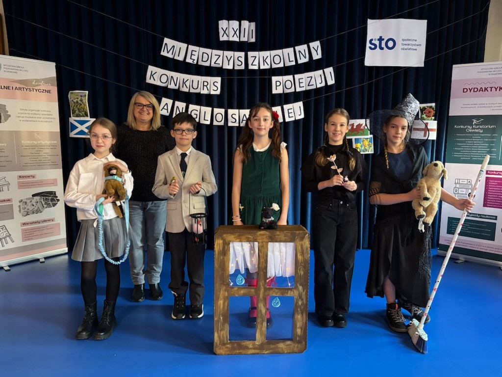 18 grudnia 2025 roku w Społecznej Szkole Podstawowej nr 5 STO w Krakowie odbył się XXII Międzyszkolny Konkurs Poezji Anglosaskiej.Celem konkursu było zaprezentowanie wiersza w języku angielskim poetów z kręgu dziecięcej literatury anglojęzycznej. Jury oprócz samej recytacji pod uwagę brało również poprawną wymowę, sposób prezentacji wierszy i umiejętności aktorskie uczniów. W konkursie wzięło udział sześcioro uczniów naszej szkoły z klasy 4b i 5d.