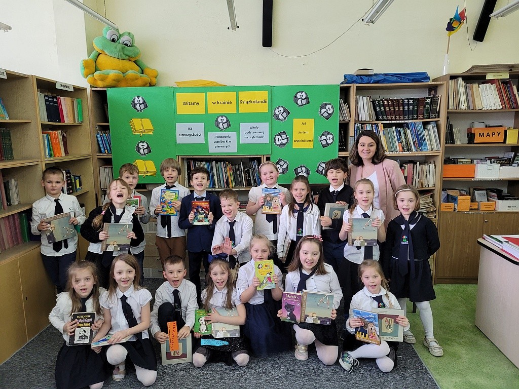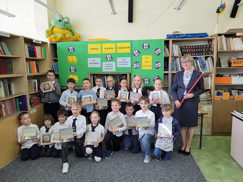 W naszej szkole pasowanie uczniów klas pierwszych na czytelników biblioteki na stałe wpisało się do kalendarza uroczystości szkolnych. Zazwyczaj uroczystość ta odbywa się w II semestrze, kiedy uczniowie znają już prawie cały alfabet. Pierwsze spotkanie z biblioteką szkolną to wyjątkowa uroczystość, a pierwsza wypożyczona książka powinna być na długo zapamiętana. Uczniowie klas pierwszych zostali zapoznani z księgozbiorem przeznaczonym dla najmłodszych, regulaminem biblioteki, sposobem wypożyczania książek oraz prośbami książki. Po takim wprowadzeniu przyszli czytelnicy złożyli uroczyste przyrzeczenie, że będą kochać i szanować książki, korzystać z ich mądrości i sumiennie wypełniać obowiązki czytelnika. Po przyrzeczeniu nastąpiło uroczyste pasowanie na czytelnika, którego dokonała Pani Dyrektor Jolanta Piekarska.