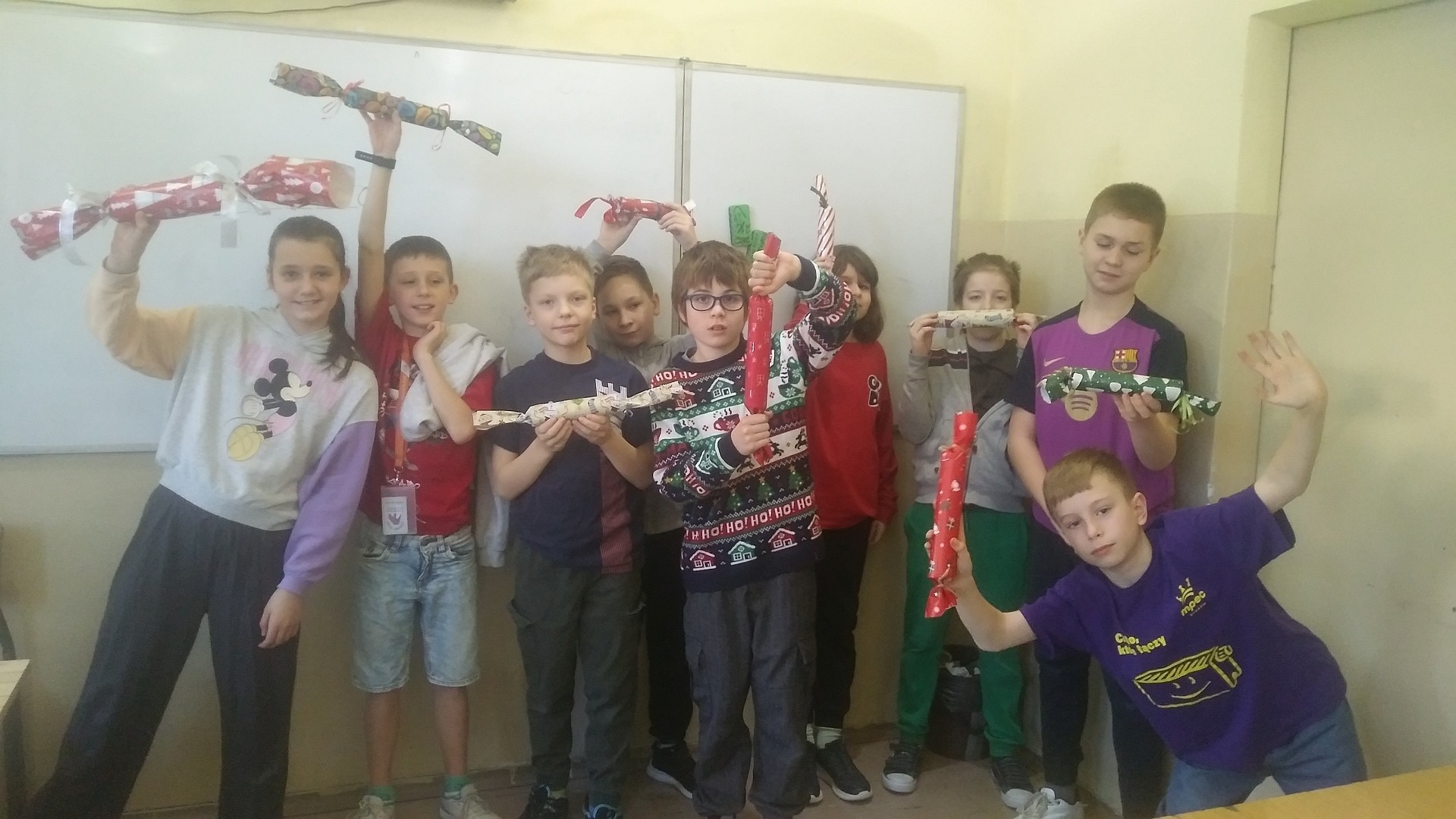 Po stworzeniu swoich crackersów i wykonaniu dokumentacji w postaci zdjęć, uczniowie podzielili się nimi na lekcji jak Brytyjczycy podczas Bożego Narodzenia. Zawartość – cukierki i słodycze zostały skonsumowane, papierowe korony włożone na głowy, a angielskie żarty przeczytane. Było wiele zabawy!