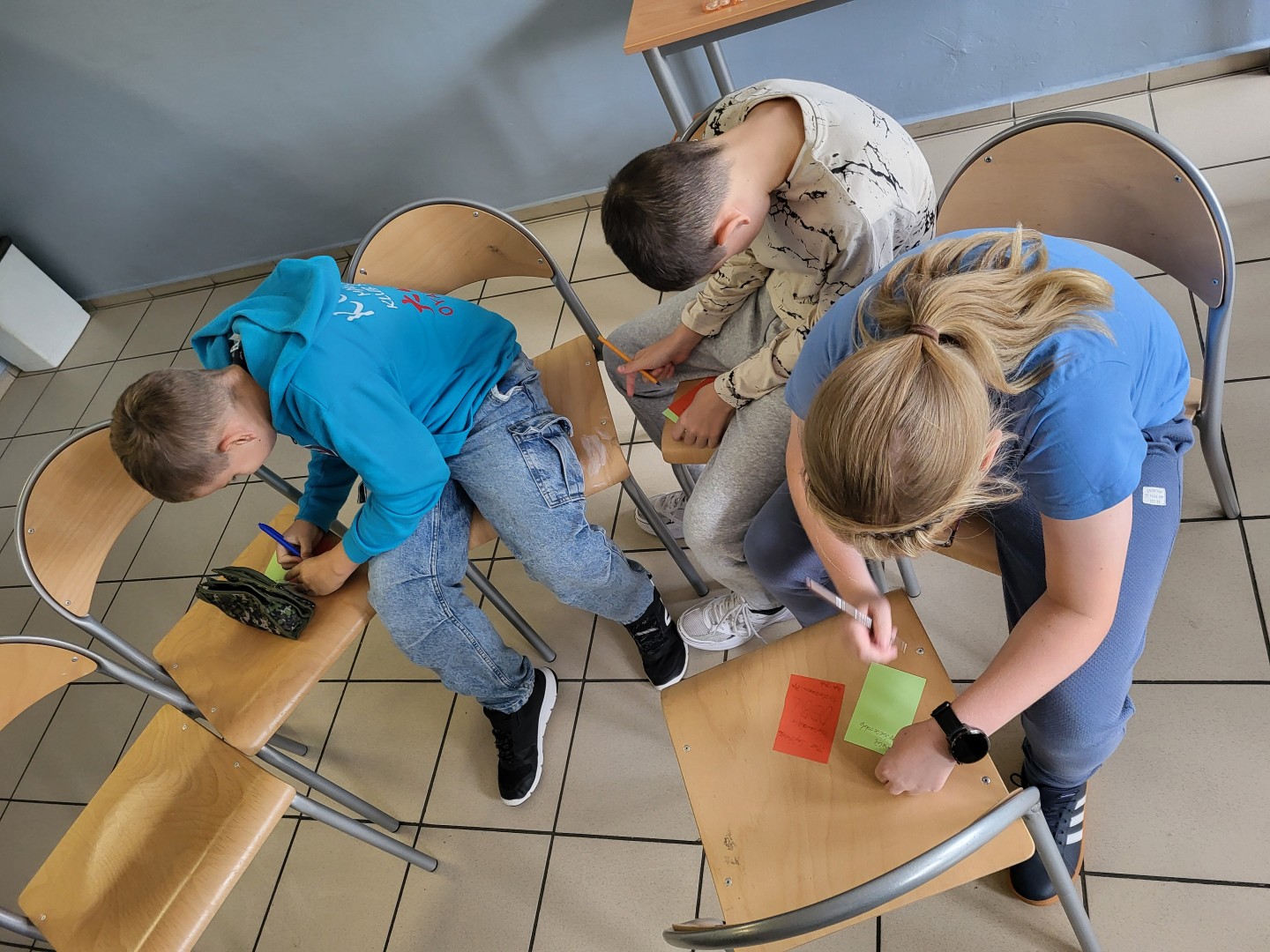 Zajęcia były dla uczniów bardzo poruszające i owocne. Dzieci z wielkim zaangażowaniem podejmowały dyskusję, dzieliły się refleksjami i pracowały nad wspólnymi rozwiązaniami. Warsztaty zakończyły się ćwiczeniami integracyjnymi, które podkreśliły, jak istotne są współpraca, empatia i wzajemny szacunek w codziennym życiu szkolnym.