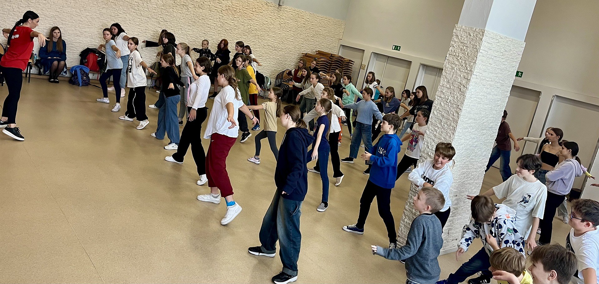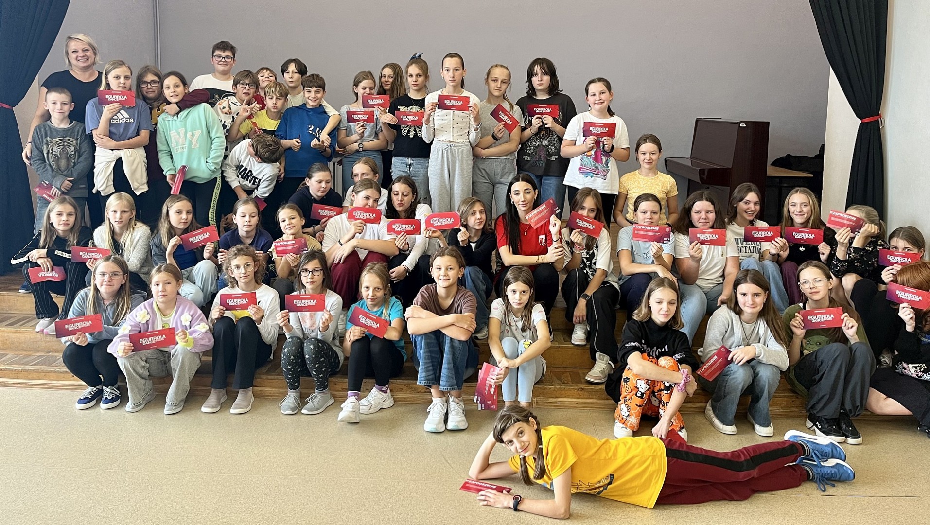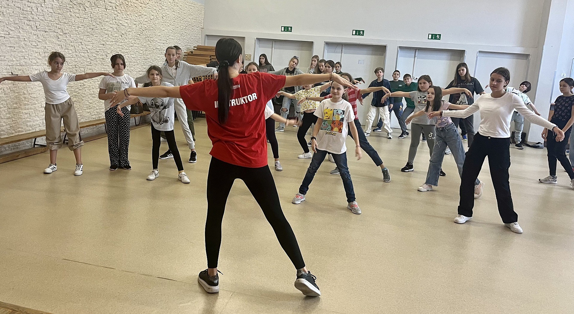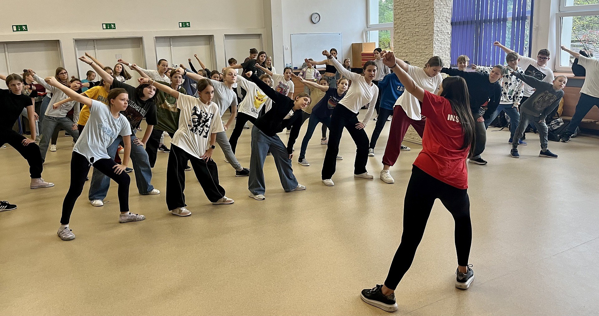Uczniowie klas 4-8 SP uczestniczyli w warsztatach tanecznych zorganizowanych w naszej szkole. Pani Kornelia Cichoń instruktor z Egurrola Dance Studio Kraków w sposób charyzmatyczny przedstawiając krótką choreografię zachęciła uczniów do wspólnej zabawy w auli szkolnej. Uczniowie po warsztatach otrzymali zaproszenie na bezpłatna lekcję tańca w Egurrola Dance Studio Kraków. Bardzo dziękujemy za tak niesamowite taneczne doświadczenie.
