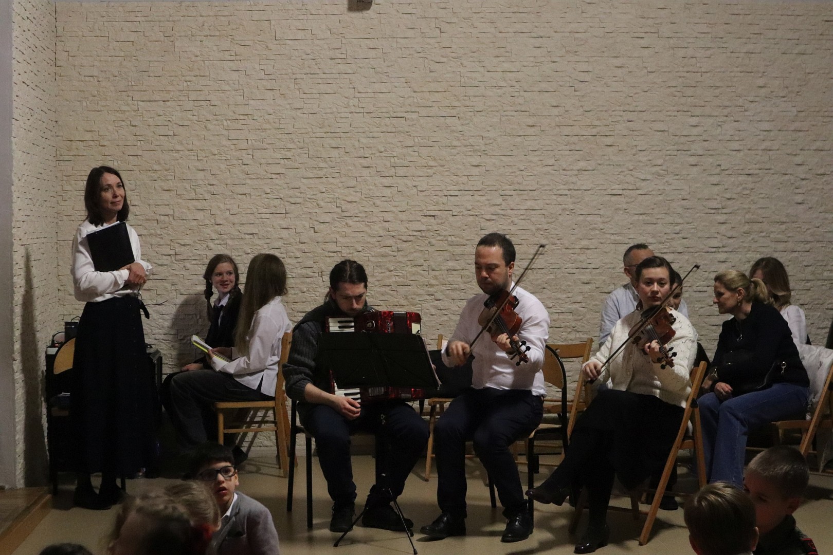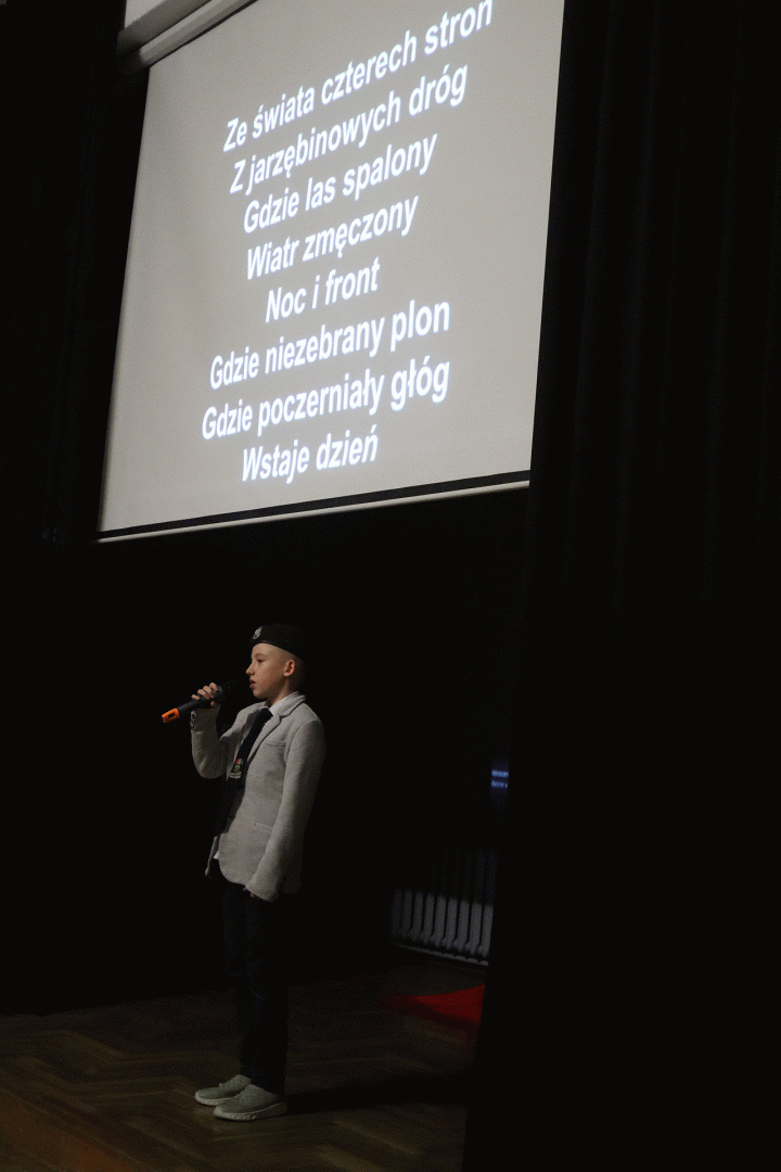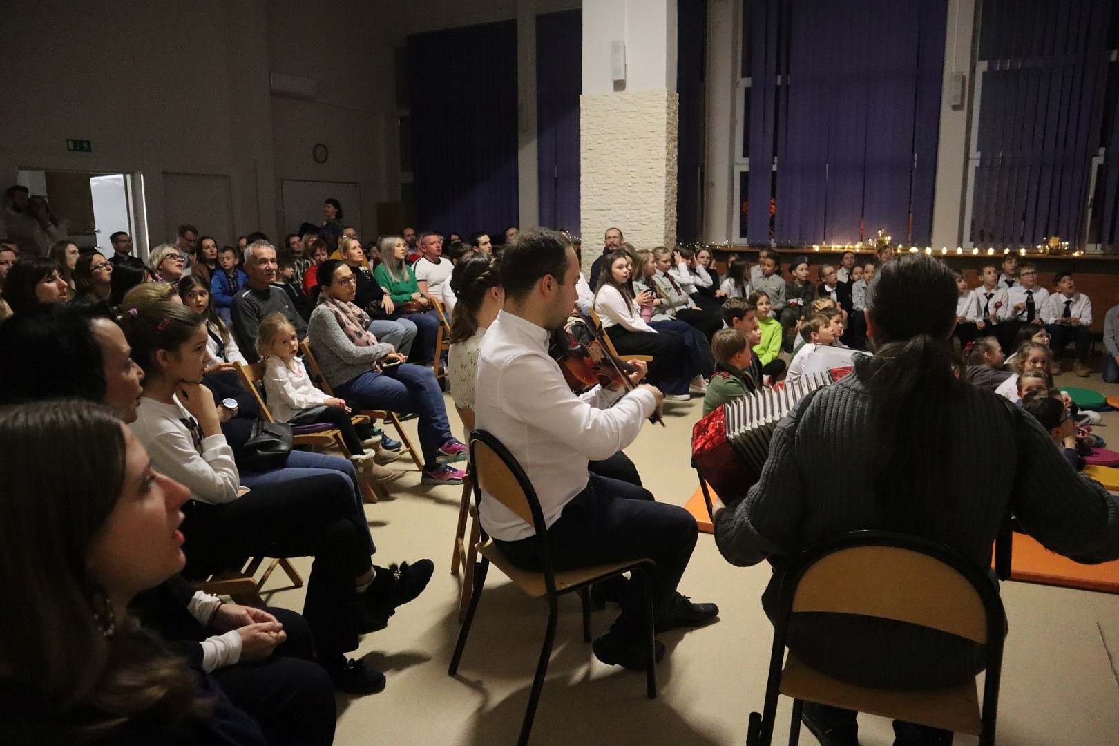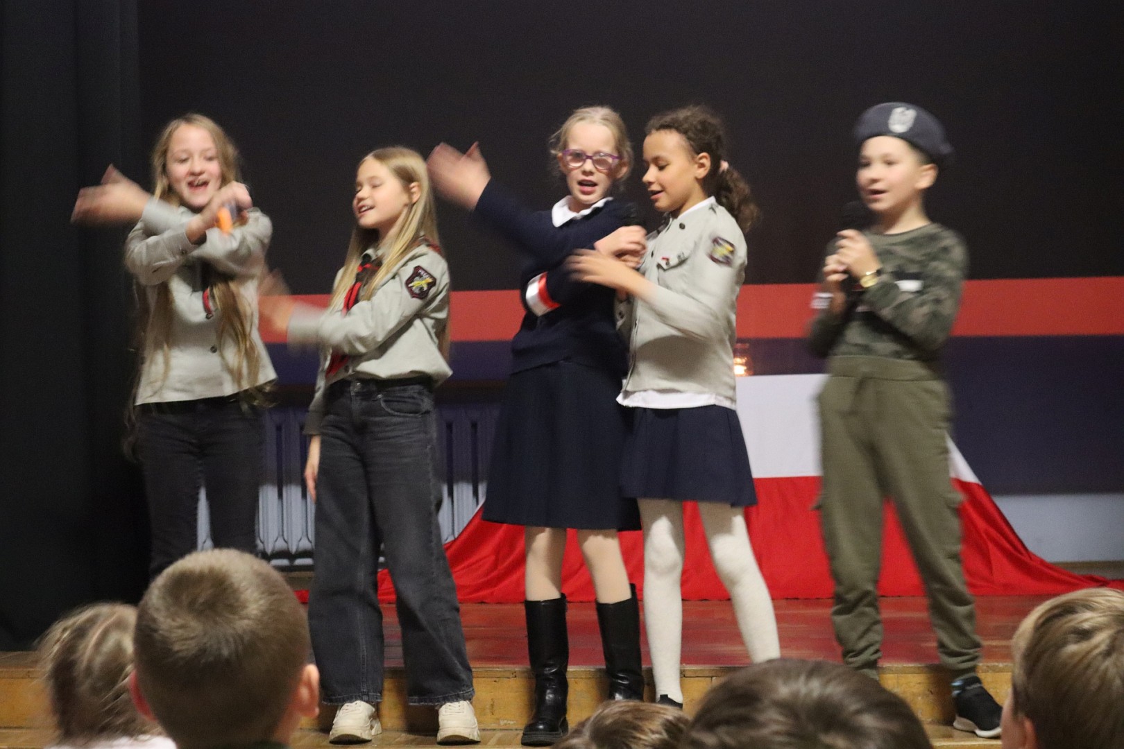 6 listopada odbyło się w naszej szkole wieczorne spotkanie, na którym wspólnym śpiewem patriotycznych pieśni i piosenek uczciliśmy nasze Narodowe Święto Niepodległości. Mimo późnej pory niezawodnie stawili się nasi wspaniali goście – uczniowie, ich rodzice, babcie i dziadkowie oraz nasi nauczyciele. Pięknym śpiewem wsparli nas chórzyści, prowadzeni przez pana Wiktora Ostrowskiego oraz zespół Żabiątka, którego opiekunem jest pani Katarzyna Niedziewicz-Sarba. Dziękujemy za wspaniały akompaniament pani Izabeli Byczek (skrzypce), panu Dawidowi Rzepce (akordeon) i panu Wiktorowi Ostrowskiemu (skrzypce). Było nastrojowo i wzruszająco.