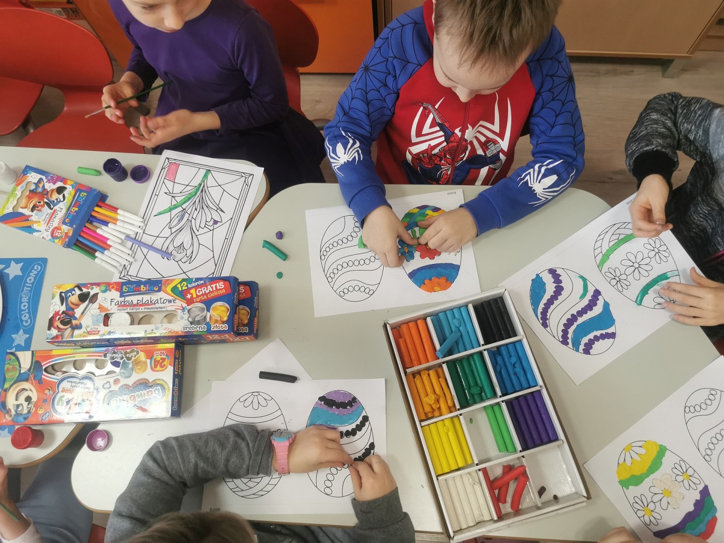 Wielkanoc w świetlicy Okres przedświąteczny w naszej świetlicy był czasem radosnych przygotowań do Świąt Wielkanocnych. Podczas zajęć dzieci wykonywały świąteczne dekoracje, poznawały wielkanocne tradycje oraz wspólnie tworzyły wiosenną, pełną uśmiechu atmosferę. [Pokaz zdjęć]