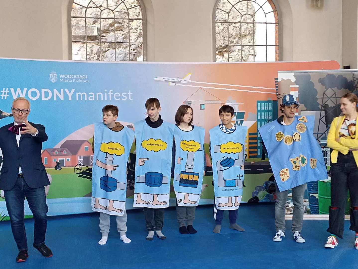 30 stycznia 2024 roku klasy 6a i 6d wybrały się do krakowskich wodociągów, aby wziąć udział w ’’ Wodnym manifeście’’. Było to przedstawienie teatralne, dzięki któremu dowiedzieliśmy się, co to jest ślad wodny, jak mądrze korzystać z wody i dlaczego oszczędzanie jej jest tak ważne. Bardzo zaskoczyła mnie informacja, jak ogromne ilości wody potrzebne są do produkcji ubrań. Teraz, wkładając moje dżinsy, będę pamiętał, że do ich powstania zużyto 9982 litry wody! Z dużej ilości zasobów, które znajdują się na Ziemi, tylko 1% to woda nadająca się do picia. Pamiętajcie, aby mądrze z niej korzystać. Bierzcie krótkie prysznice, dbajcie o swoje ubrania i nie marnujcie wody, bo od nas zależy los planety.