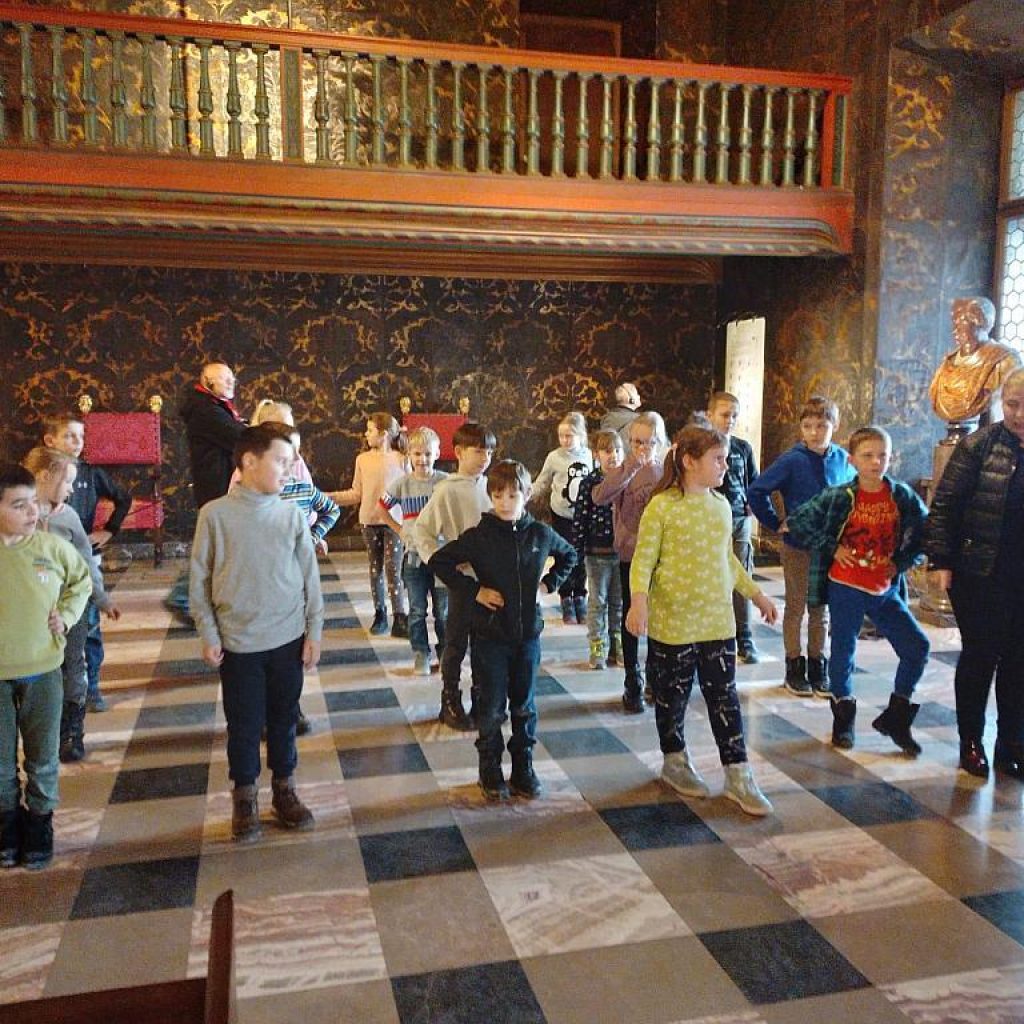 Podczas wycieczki na Wawel uczniowie klasy 2c przenieśli się w czasie i odkrywali fascynujący świat dawnych zabaw i tańców dworskich.