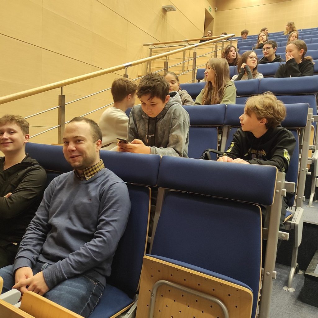 Uczniowie klasy 7b brali udział w wykładzie naukowym „Jak odkrywamy fizykę?” organizowanym w ramach tzw. naukowych czwartków przez Wydział Fizyki, Astronomii i Informatyki